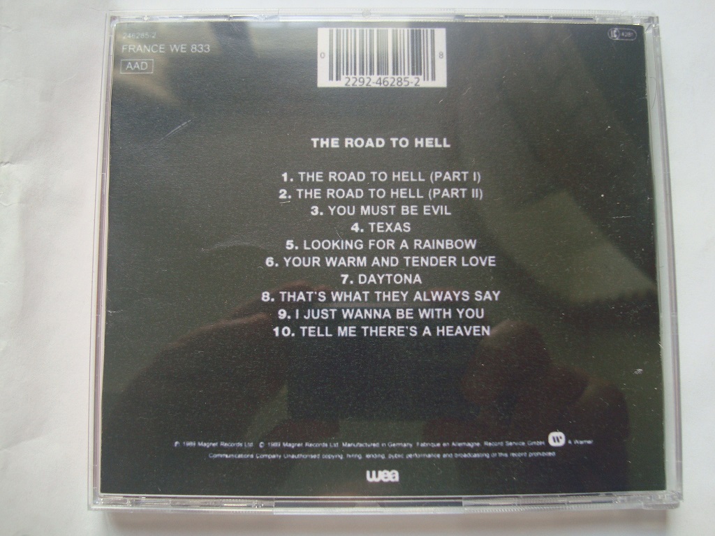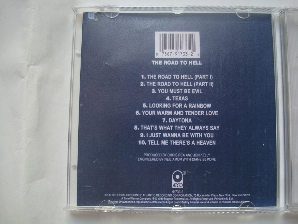 آلبوم سی دی موسیقی " Chris Rea 1989 " ( کریس ریی آ ) با اسم آلبوم ( The Road to Hell ) در سبک موسیقی Blues Rock که دهمین آلبوم منتشر شده خواننده - ترانه سرا و گیتاریست سبک بلوز انگلیسی ذکر شده است که معروفترین و شناخته شده ترین آلبوم منتشر شده این خواننده قدیمی هم هست چون ترانه بسیار معروف The Road To Hell Pt.2 در این آلبوم که یک اثر Hit یا پرفروش بود در حقیقت یکی از ترانه های شاخص این خواننده بود که کلا این خواننده را با این ترانه در بسیاری از نقاط جهان می شناسند . ضمنا این آلبوم بمدت سه هفته درصدر جدول موسیقی انگلستان یا UK Albums Chart جای گرفت که با فروش بالایش تا سال 2004 میلادی نشان شش گانه پلاتینی را از طرف BPI انگلستان دریافت کرد . ترانه نوستالژی و خاطره ساز The Road to Hell Pt.2 جز آن دسته ترانه های رادیو تلویزیون کشورمان بود که برای مدتهای مدیدی در اوایل دهه نود میلادی و به سالهای شمسی 1370 به بعد در این رسانه پخش میشد ( قسمتی از ترانه که نسبتا طولانی و بیکلام است ) .