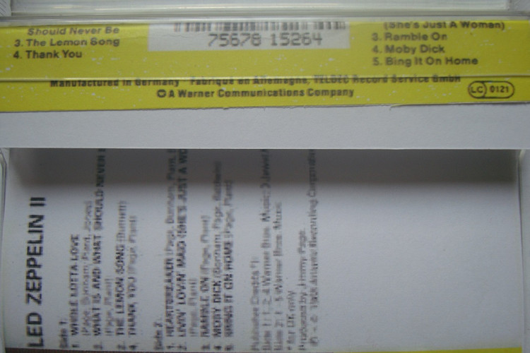 نوار کاست " Led Zeppelin 1969 " با اسم آلبوم ( Led Zeppelin II ) در سبک های موسیقی Blues Rock/Rock Rock آلبوم Zeppelin Led II که دومین آلبوم استودیویی گروه راک انگلیسی لد زپلین است که در 22 اکتبر 1969 درآمریکا و در 31 اکتبر 1969 در بریتانیا توسط آتلانتیک رکوردز منتشر شد. جلسات ضبط آلبوم در چندین مکان در بریتانیا و آمریکای شمالی از ژانویه تا آگوست 1969 انجام شد. تولید آلبوم به جیمی پیج، گیتاریست و ترانه سرای گروه، ارتباط داده شد و همچنین اولین آلبوم لد زپلین بود که ادی در آن حضور داشت. کرامر به عنوان مهندس خدمت کرد.