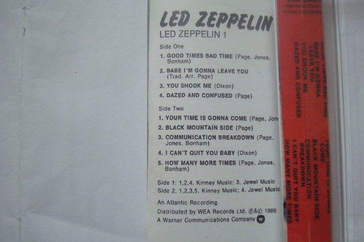 نوار کاست موسیقی " Led Zeppelin 1969 " با اسم آلبوم ( Led Zeppelin ) در سبک موسیقی Hard Rock/Blues Rock که اولین آلبوم منتشر شده این باند بریتانیایی معروف و یکی از بنیانگذاران موسیقی متال و راک در سبک رایجش در سال 1969 بود که این اثر در تاریخ 12 ژانویه آنسال در آمریکا و در 31 مارس در انگلستان توسط شرکت Atlantic Records به بازار عرضه شد . آلبوم کمی بعد از تشکیل گروه در سال 1968 در استودیوی المپیک لندن ضبط شد . بیشتر ترانه های آلبوم در سبک بلوز و فولک است . این گروه قدیمی و کهنه کار با فروش بیش از 111.5 میلیون Records از آلبومهایشان فقط در آمریکا سومین باند پرطرفدار و پرفروش موسیقی در آن کشور محسوب میشوند و پنجمین باند پرطرفدار بطور کلی حتی با گذشت اینهمه سال از تشکیلشان می باشد . هر 9 آلبوم منتاشر شده این باند در جدول موسیقی Billboard Album Chart جز ده آلبوم پرفروش جای گرفته که از این تعداد شش تایشان مستقیما در رده اول قرار گرفته اند . همچنین در انگلستان هشت آلبوم متوالیشان در رده اول جدول موسیقی این کشور قرار گرفته . نامشان در سال 1995 در راهروی مشاهیر راک اند رول جای گرفته . نفرات گروه شامل Robert Plant لیدر و خواننده و گیتاریست Jimmy Page و نوازنده گیتار باس و نوازنده کیبرد John Paul Jones و جازیست John Bonham هستند .