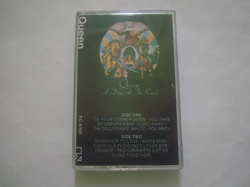 نوار کاست موسیقی " 1976 Queen " با اسم آلبوم ( A Day At The Races ) در سبک موسیقی Art Rock که آلبوم پنجم گروه موسیقی مشهور یاد شده است که توسط شرکت EMI در آمریکا و توسط شرکت Elektra Records در تاریخ دهم دسامبر سال 1976 منتشر شد و اولین آلبوم این گروه بسیار معروف و سرشناس راک بود که تهیه کننده اش خودشان بودند . استودیوی ضبط آلبوم Manor و Essex بود و مهندس ضبط آن Mike Stone . این آلبوم درذ صدر یا جایگاه اول جدول موسیقی انگلستان - هلند و ژاپن قرار گرفت . در جدول US Billboard 200 در مکان پنجم قرار گرفت و در وضعیت دریافت نشان پلاتینی قرار گرفت .