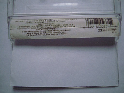 نوار کاست موسیقی " Warlock 1986 " ( وور لاک ) با اسم آلبوم ( True As Steel ) در سبک موسیقی Heavy Metal پس از دو سال اجرای مداوم، گروه آلمانی Warlock با خوانندگی Doro ( با نام کامل Dorothee Pesch، ؛ خواننده)، پیتر سیگتی (گیتار)، رودی گراف (گیتار)، فرانک رایتل (باس) و Michael Eurich (درامز) ) - بالاخره یک آلبوم منتشر کرد. با امضای برچسب مستقل Mausoleum، در سال 1984 آنها Burning The Witches را منتشر کردند که دارای صدایی معمولی از گروه های آلمانی مانند Scorpions و Accept بود، اما با آواز دورو که به طرز عجیبی شبیه به Ronnie James Dio بود. این آلبوم و حضور خواننده با موهای بلوندش باعث جلب توجه آنها در سایر نقاط جهان شد و آنها با Vertigo Records قرارداد امضا شدند که یک سال بعد Hellbound را منتشر کرد. در سال 1986 تاکید بر روی گروه عمدتا بر روی Pesch متمرکز شد. گراف را ترک کرد تا نیکو آروانیتیس جایگزین آن شود و تک آهنگ بعدی، «تو به روح من آسیب میزنی»، کنار گذاشته شد (ترکها بعداً در یک EP 12 اینچی ظاهر شدند). True As Steel از تولید بیش از حد و آمریکایی شدن رنج می برد. Pesch سپس گروه را به نیویورک منتقل کرد و در آنجا منحل شد. یک ترکیب جدید، با تنها بازمانده یوریش، تامی بولان (گیتار)، تامی هنریکسن (باس) و در نهایت یک آروانیتیس دوباره استخدام شد. آلبوم حاصل، Triumph And Agony، قطعاً دومی بود و دوباره گروه از هم جدا شد. فورس ماژور، که تنها به دورو نسبت داده می شود، اساساً یک تلاش انفرادی بود. بابی راندینلی، سابقاً از گروه rainbow، در آن مجموعه درام می نواخت. یک سال بعد، وارلاک به تاریخ محدود شد، زیرا پش کاملاً صدای آمریکایی را پذیرفت و خود را به عنوان یک لی آرون یا لیتا فورد جدید جلو برد. او حرفه انفرادی خود را تا هزاره جدید حفظ کرداز گروه موسیقی آلمانی ذکر شده که اولین آلبومشان هم در سال 1984 منتشر شد . این گروه با خوانندگی Doro Pesch به موفقیتهای در اروپا رسید و تورهای موسیقی منظمی را برای معرفی خودشان به دوستداران موسیقی برگزار کردند . این آلبوم True As Steel سومین آلبوم منتشر شده اینگروه بود که برای موزیک ویدئوی ترانه Fight For Rock در Mtv مورد استقبال قرار گرفت و در جدول Billboard Hot 100 هم جای گرفت .