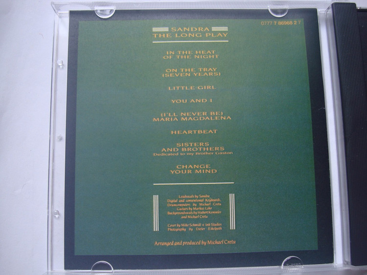 آلبوم موسیقی Sandra 1985 با اسم آلبوم ( The Long Play ) در سبک موسیقی شاد Electronic/Euro-disco/Synth Pop از خواننده شناخته شده آلمانی یاد شده که اولین آلبوم منتشر شده او بود که توسط Virgin Records منتشر شد و یکی از معروفترین و شناخته شده ترین آلبمهای منتشر شده او هم هست . از نظر تجاری و میزان فروش دو ترانه Hit یا پرفروش این آلبوم بنامهای Ill Never Be ) Maria Magdalena ) که شماره یک جدول موسیقی کشورهای مختلف شد و ترانه معروف In the Heat of the Night که در رده پنج کشورهای جهان قرار گرفت .