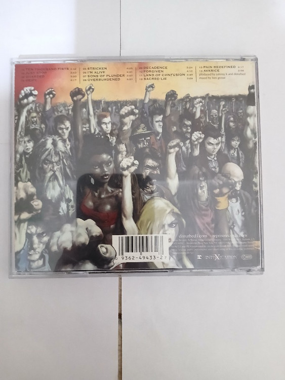 آلبوم موسیقی اوریجینال " Disturbed 2005 " با اسم آلبوم ( Ten thousand Fists ) در سبکهای موسیقی Alternative Rock/nu metal که توسط بند موسیقی متال آمریکایی بالا منتشر شد . آلبوم یاد شده با دفترچه کامل برای خریدار ارسال می شود . عکس شماره یک و پنج به ترتیب عکس روی سی دی و پشت آن محلی که کددیجیتالی و شماره کاتالوگ سی دی توسط شرکت تولید کننده آلبوم درج شده که اصلی ترین نشان محصول شرکتی و اصل در آلبومهای موسیقی است .